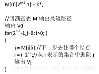 最优指标函数F(Sk)= F(i, Sk): 已遍历过K个节点,当前从i结点出发,访问Sk中的一节点一次且且一次,最后返回起点V1的最短距离。