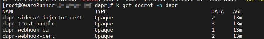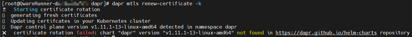 如果dapr是使用本地的Charts,使用dapr cli更新证书会报错: