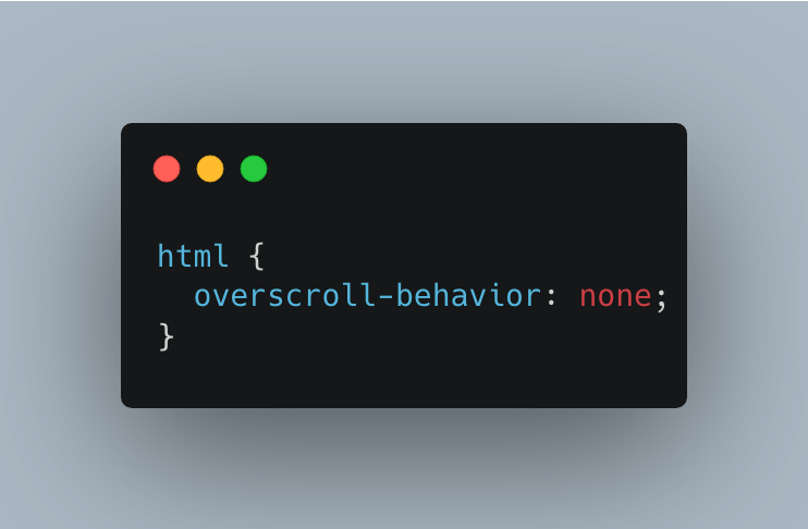 MDN: We also wanted to get rid of the standard overscroll effects when the contacts are scrolled to the top or bottom (e.g. Chrome on Android refreshes the page when you scroll past the top boundary). This can be prevented by setting overscroll-behavior: none on the <html> element: