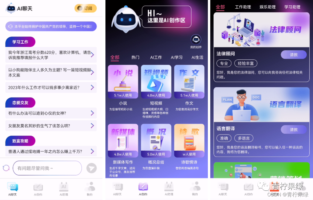 3.智能AI管家:语言翻译专业、法律顾问专业、营销策划专业、职业顾问专业等等