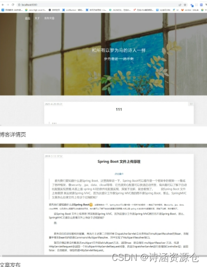 源码下载:基于SSM的博客管理系统: 项目介绍基于SSM+JSP的博客管理系统分为前台系统和管理系统,前台页面可以匿名访问,管理端需登录访问