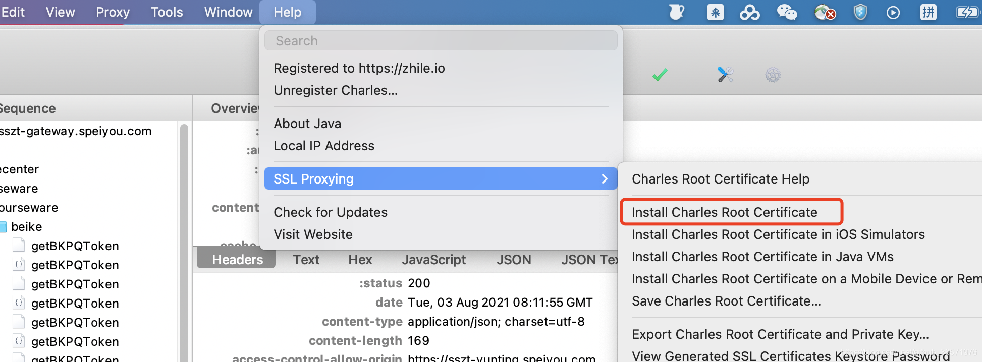 1、点击help->ssl proxying->install charles root certificate