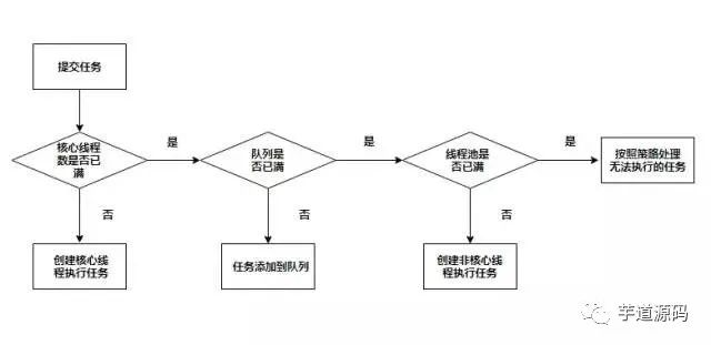 若队列已满,判断线程池是否已满,线程池是否已满和maximumPoolSize参数有关,若未满创建线程执行任务