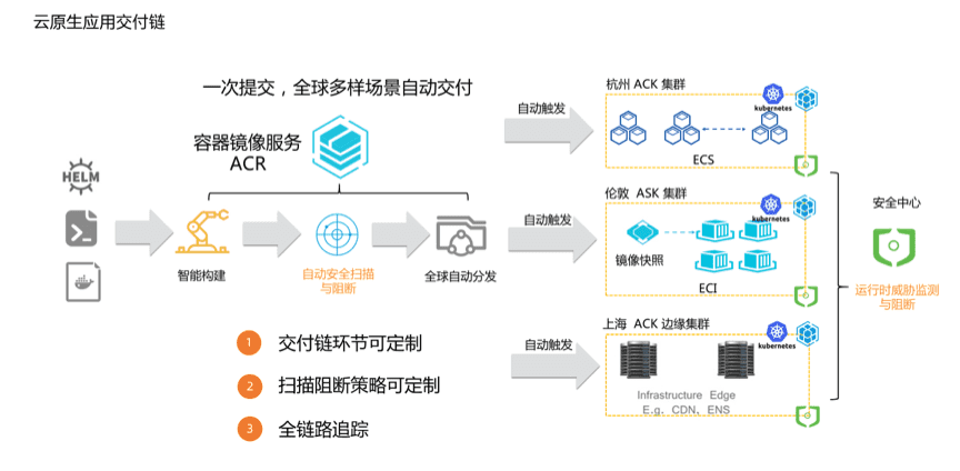同时实现了整个应用交付周期的流程自动化,开发者只要一次变更应用,按照配置多场景交付,即可实现一次应用变更,全球化多场景自动交付。