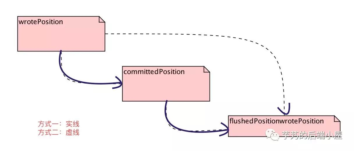 | 方式一 | 写入内存字节缓冲区(writeBuffer) | 从内存字节缓冲区(write buffer)提交(commit)到文件通道(fileChannel) | 文件通道(fileChannel)flush |