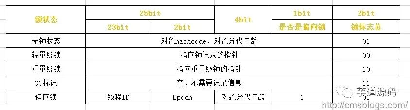 对象头信息是与对象自身定义的数据无关的额外存储成本,但是考虑到虚拟机的空间效率,Mark Word被设计成一个非固定的数据结构以便在极小的空间内存存储尽量多的数据,它会根据对象的状态复用自己的存储空间,也就是说,Mark Word会随着程序的运行发生变化,变化状态如下(32位虚拟机):