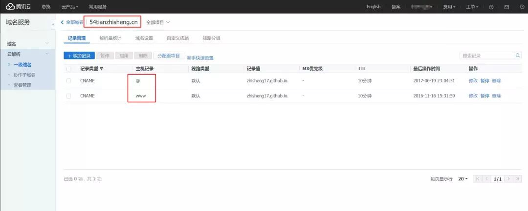 二级域名: 如:abc.54tianzhisheng.cn,填写abc。