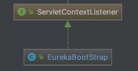 EurekaBootStrap 实现了 javax.servlet.ServletContextListener 接口,在 Servlet 容器( 例如 Tomcat、Jetty )启动时,调用 #contextInitialized() 方法,初始化 Eureka-Server,实现代码如下: