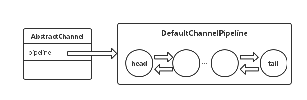 pipeline默认实现DefaultChannelPipeline内部维护了一个DefaultChannelHandlerContext链表。