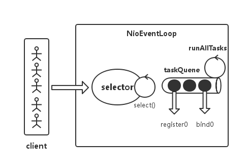 添加到taskQueue中的任务,如register0、bind0等任务,由runAllTasks方法触发。