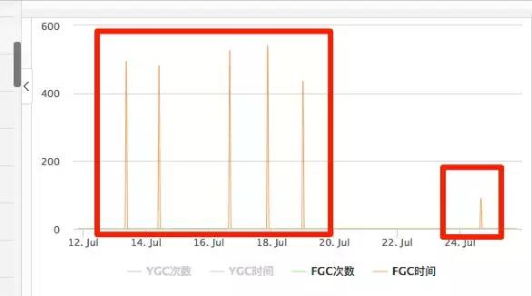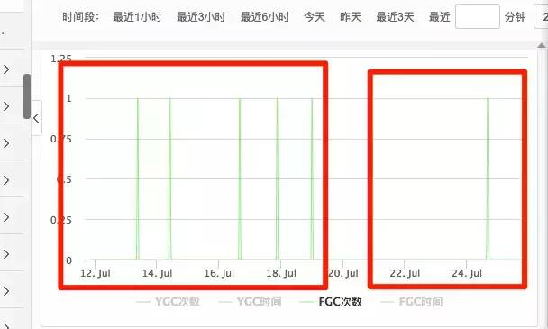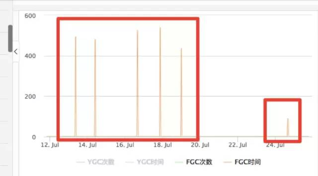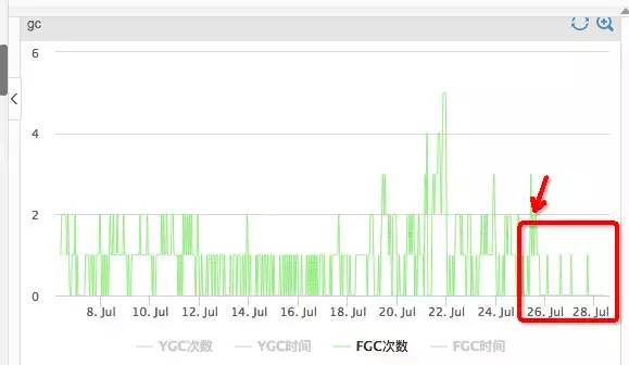 online(另外一个工程):可以明显看到fgc的统计频率少了很多;