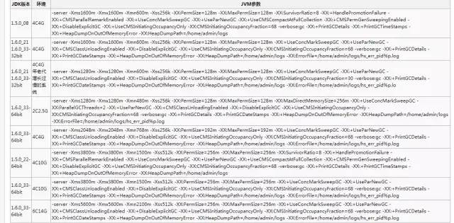 参考了之前在淘宝天猫工作的公司的经历:经过大家讨论,根据jdk的版本以及线上机器配置,确定了一个推荐的默认jvm模版: