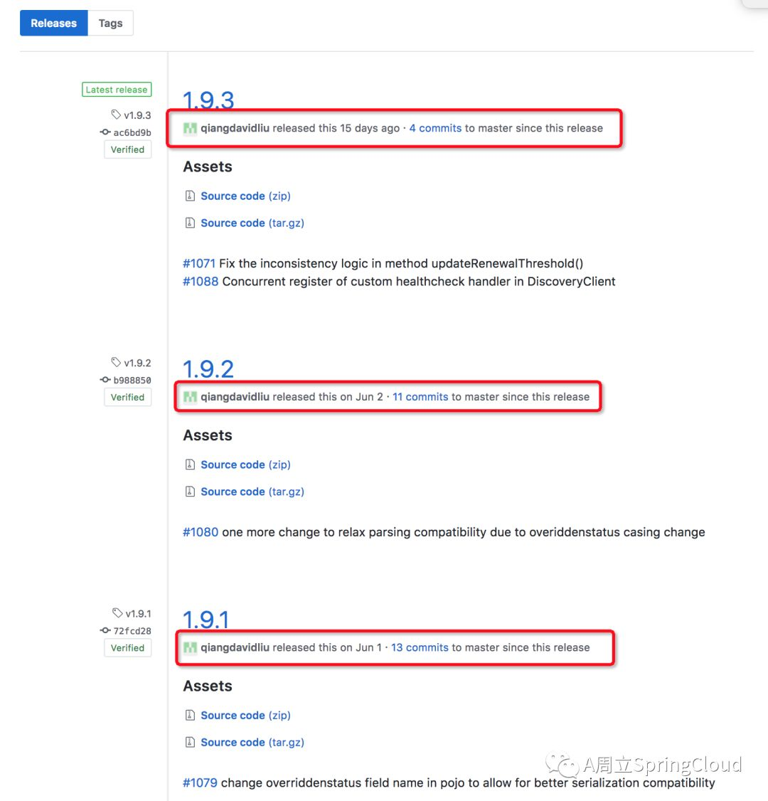 不妨来看一下Eureka的发布历史:https://github.com/Netflix/eureka/releases