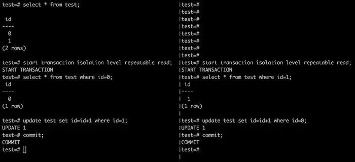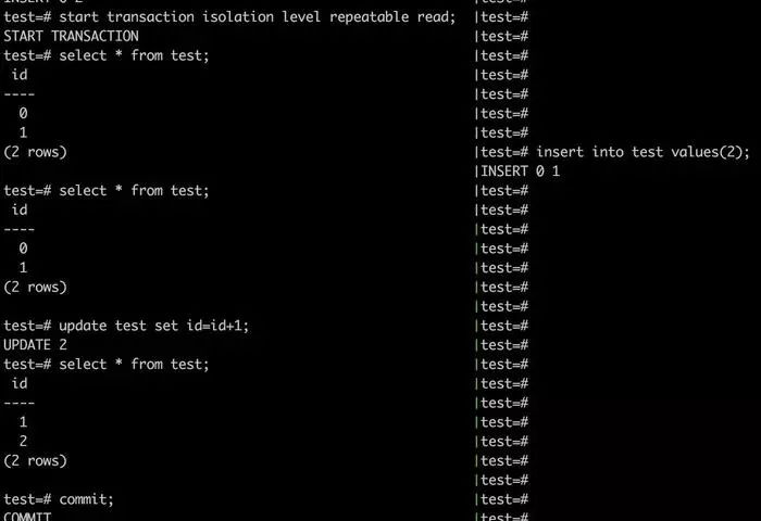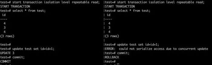 pg实现的隔离级别是比较标准的,可重复度级别(实际是SI)没有幻读,这里举两个例子