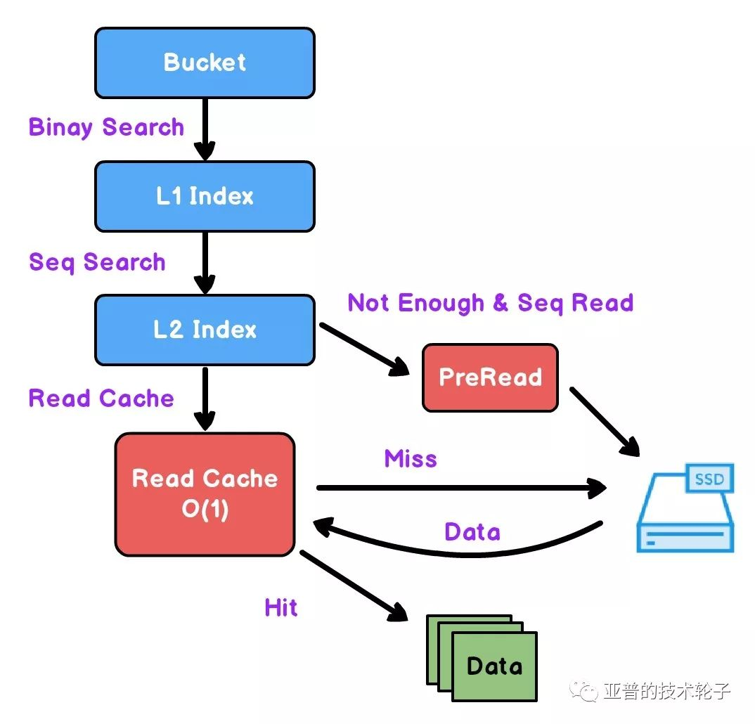 数据先从缓存中做查找,缓存命中直接返回,失效则回源到SSD。