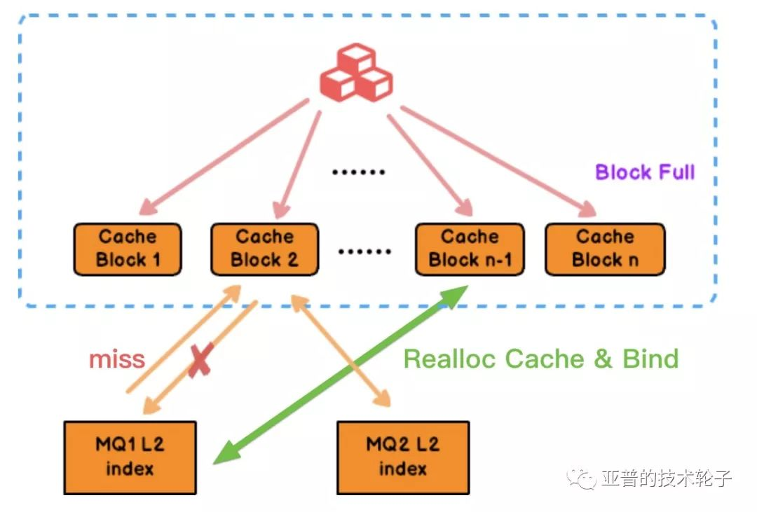 MQ1绑定的缓存块已经被MQ2替换。