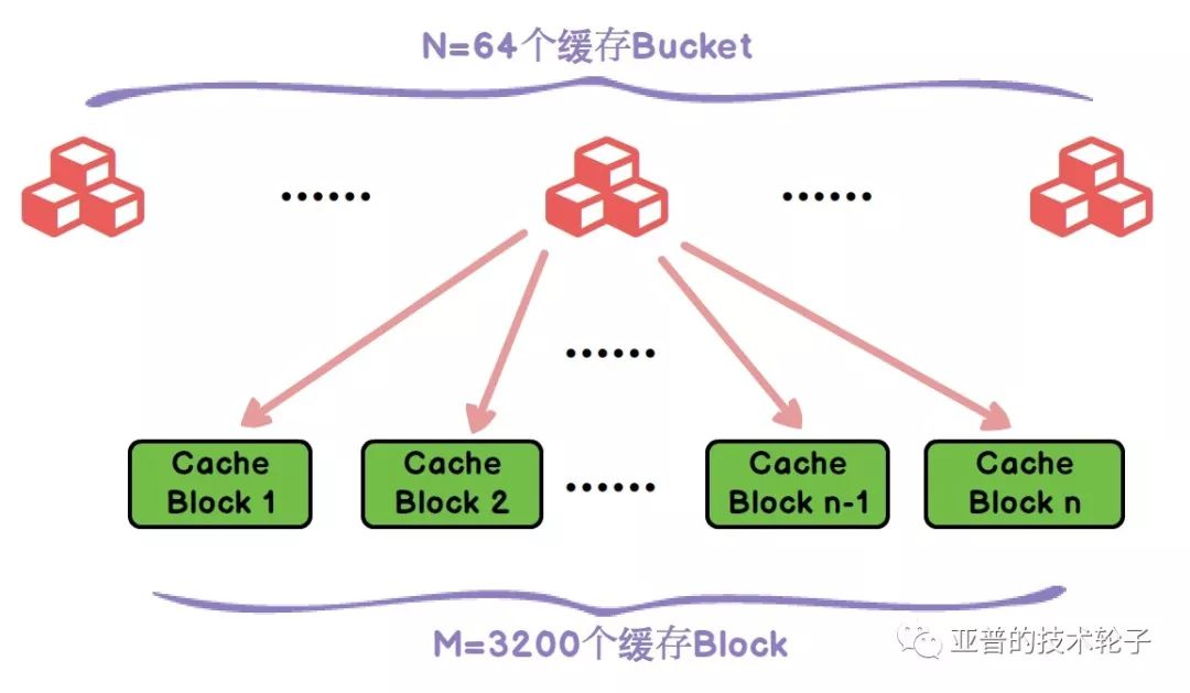 count.fetch_add(1) % M = M-1,找到新的缓存块进行重新绑定。说明:整个分配的逻辑是一个循环使用的过程,当所有的缓存桶都被使用,那么会从数组首地址开始重新分配、替换。