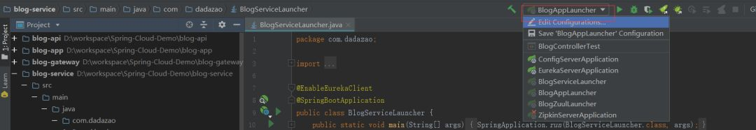 如果你的项目用的是Spring Boot,那么打开启动类,点击右侧小图标: