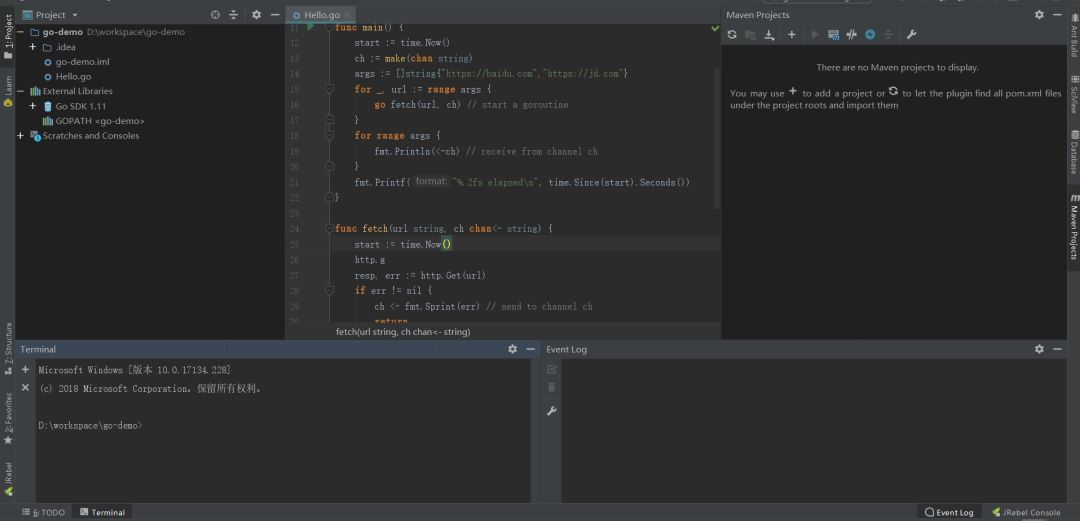 IDEA自带了智能提示,不用配置,开箱即用。最重要的是,在IDEA中开发Go和开发Java一样顺手,快捷键是一致的,提示与代码生成、插入是一致的,这在Eclipse上几乎不可实现。我安装过Eclipse的Python语言扩展插件,和在Eclipse上编写Java是有一定落差的,而在IDEA上不会,他给你的体验是一致的,这个必须赞。