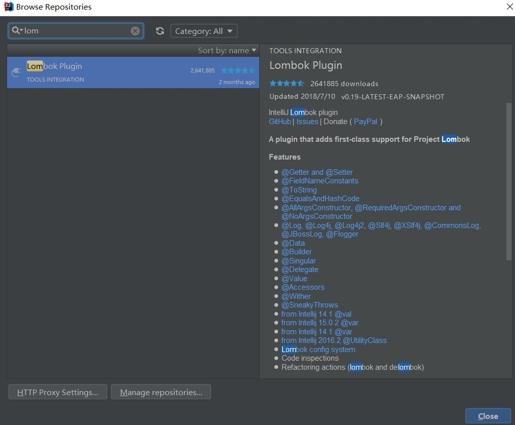 不过对于有些插件来说,IDEA上的安装流程比Eclipse顺畅了不止一个级别,比如大家常用的lombok,Eclipse上安装过程繁琐不说了,IDEA上呢:
