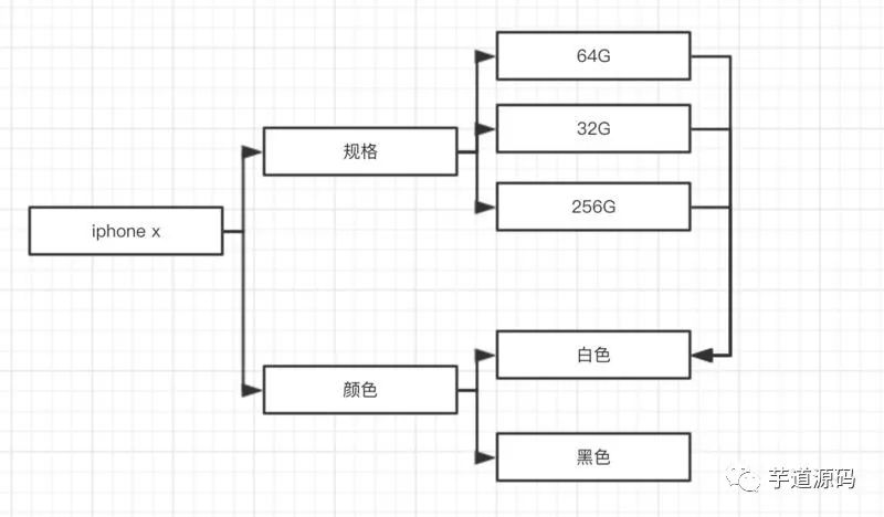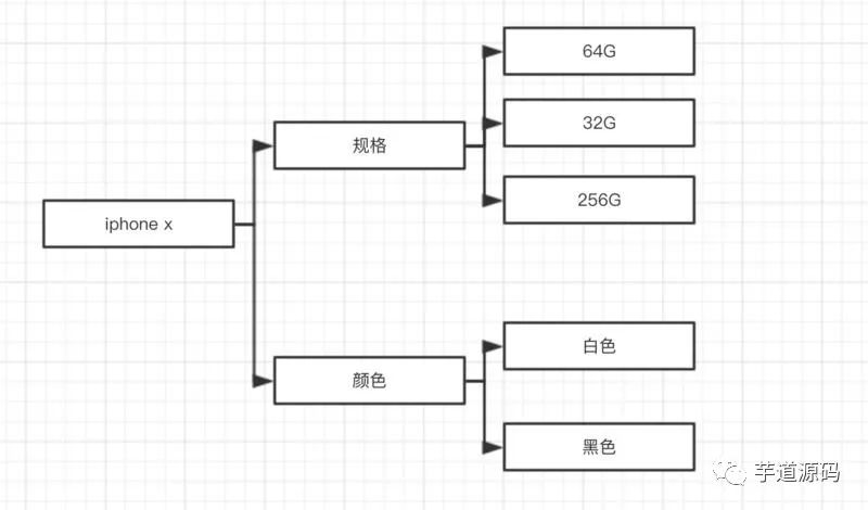 字面意思来看,库存则是指的某个商品的某个规格还有多少件,这个时候就不能只针对商品了。上面的例子iphonex有2个不同规格的商品,这个时候无法计算其每个规格的库存(创建2个商品可是不切实际,未来管理会很复杂,就例如安踏的跑鞋有十几个尺码,难道要创建十几个商品吗?),此时只能针对当前商品再创建子商品,我们叫它规格,例如iphonex 有 存储和颜色2个规格