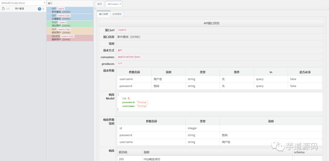 @ApiImplicitParam不同的是,他是写在参数左侧的。如(@ApiParam(name = "username",value = "用户名") String username)@ApiModel: 描述