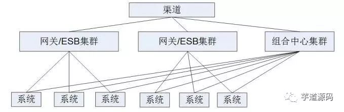 上图中,通过将业务按条线进行不同的分区,每个分区用独立的ESB集群进行集成。这样,每个前端系统调用后台服务的时候,就可以把访问压力分散到不同的分中心上,从而通过增加资源来提高访问效率。