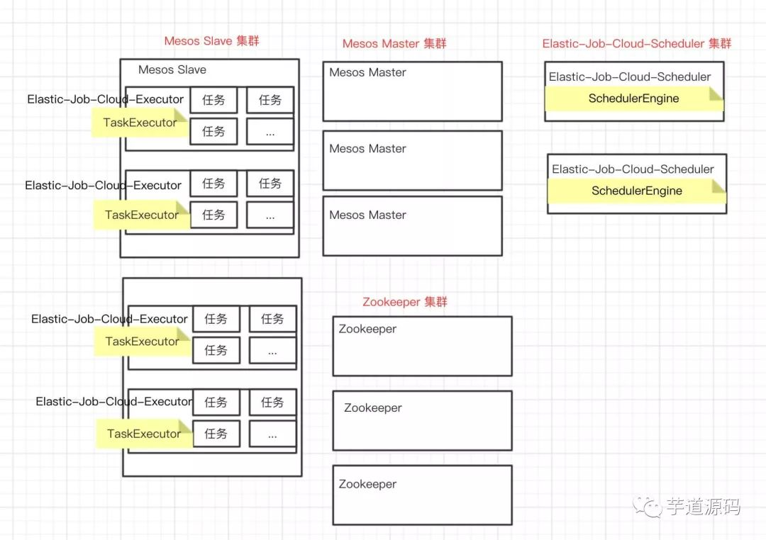 一个高可用的 Elastic-Job-Cloud 组成如下图: