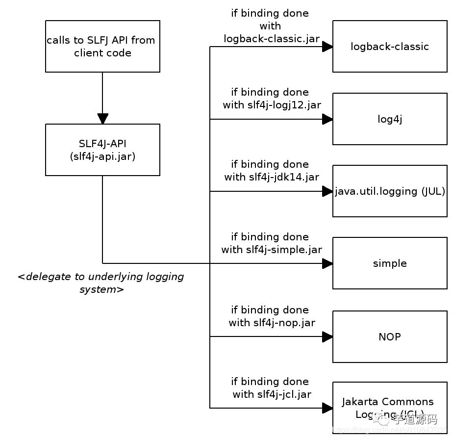 总之,Slf4j更好的兼容了各种具体日志实现的框架,如图: