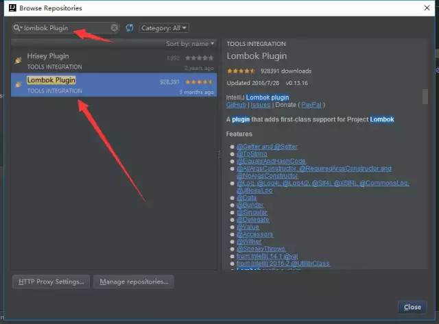 2.搜索 Lombok Plugin 安装后,重启IDEA即可生效