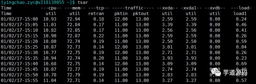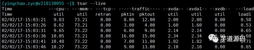 tsar --live ##可以查看实时指标,默认五秒一刷
