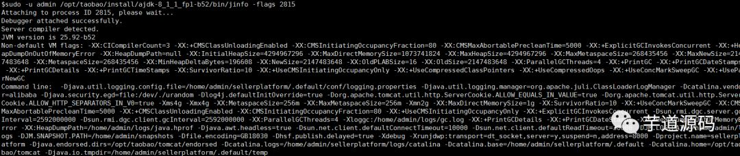 sudo -u admin /opt/taobao/install/ajdk-8_1_1_fp1-b52/bin/jinfo -flags 2815