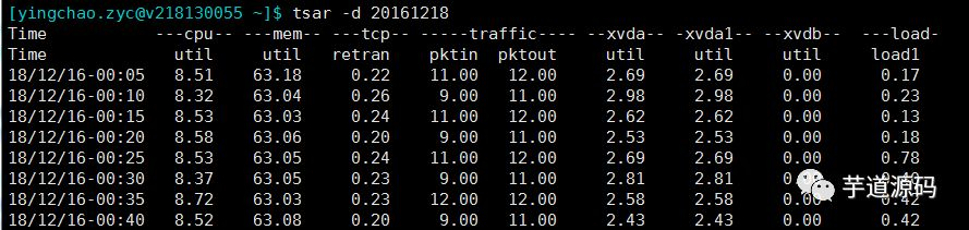 tsar -d 20161218 ##指定查看某天的数据,貌似最多只能看四个月的数据