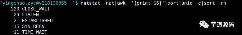 #查看当前连接,注意close_wait偏高的情况,比如如下
