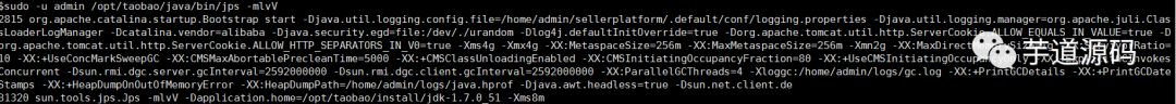 sudo -u admin /opt/taobao/java/bin/jps -mlvV
