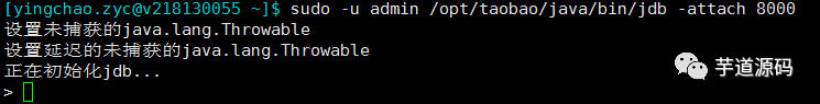 出现以上代表jdb启动成功。后续可以进行设置断点进行调试。