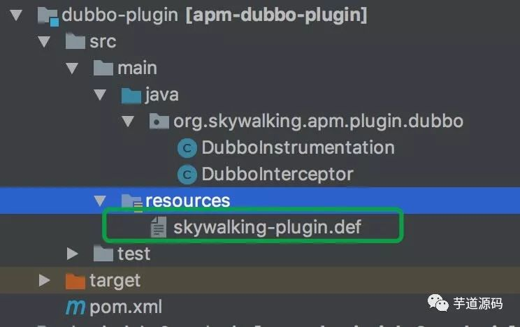 org.skywalking.apm.agent.core.plugin.PluginResourcesResolver ,插件资源解析器,读取所有插件的定义文件。插件定义文件必须以 skywalking-plugin.def 命名,例如 :
