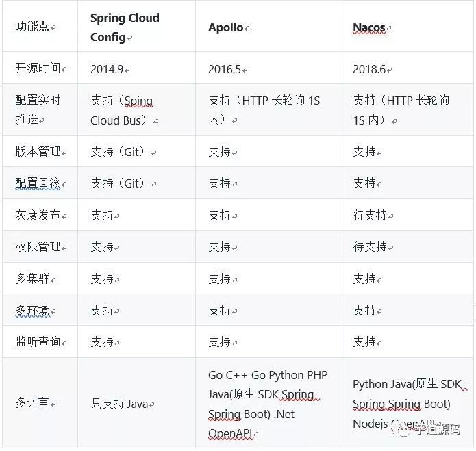 由于Disconf不再维护,下面对比一下Spring Cloud Config、Apollo和Nacos。