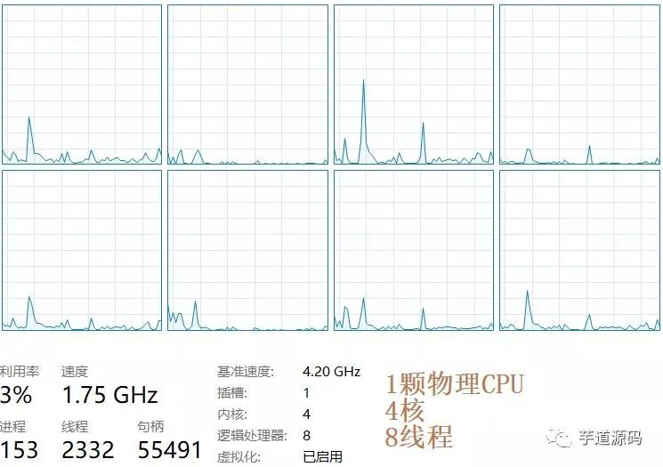 3、对于超线程CPU来说,每核CPU可以有多个线程(数量是两个,比如1核双线程,2核4线程,4核8线程),每个线程都是一个虚拟的逻辑CPU(比如windows下是以逻辑处理器的名称称呼的),而每个线程在OS看来也是独立的CPU。