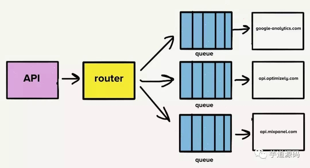 到每个目的地的API,这很有用,开发人员只需要将他们的事件发送到一个特定的目的地——也就是