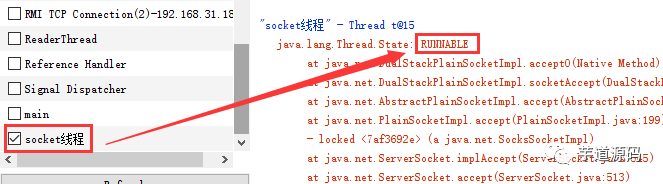 网络阻塞时同理,比如socket.accept,我们说这是一个“阻塞式(blocked)”式方法,但线程状态还是 RUNNABLE。