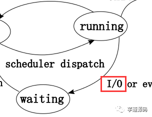 cpu 会收到一个比如说来自硬盘的中断信号,并进入中断处理例程,手头正在执行的线程因此被打断,回到 ready 队列。而先前因 I/O 而waiting 的线程随着 I/O 的完成也再次回到 ready 队列,这时 cpu 可能会选择它来执行。