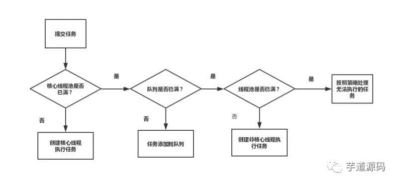 如果线程池核心线程数已满,即线程数已经等于corePoolSize,一个新提交的任务,会被放进任务队列workQueue排队等待执行。