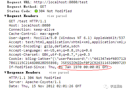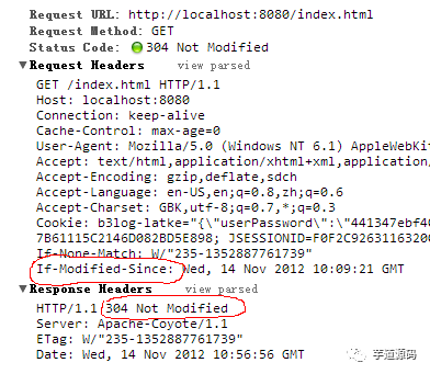 浏览器也很聪明,当你再次(点击链接,或者F5,或者回车,但是不能是ctrl+F5)请求这个资源时,浏览器会询问server这个资源自上次告诉我的最后修改时间以来有没有被修改(请求头中If-Modified-Since)。(见图二)
