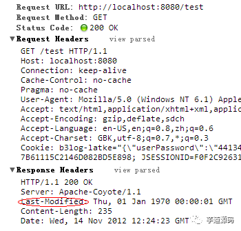 当浏览器第一次发起请求时(请求头中没有If-Modified-Since),server会在响应中告诉浏览器这个资源最后修改的时间(响应头中的Last-Modified)。(见图一)