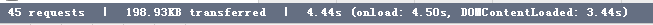我们看到总共发起了45个请求,请求的数据量为198.93KB,然后F5刷新一次: