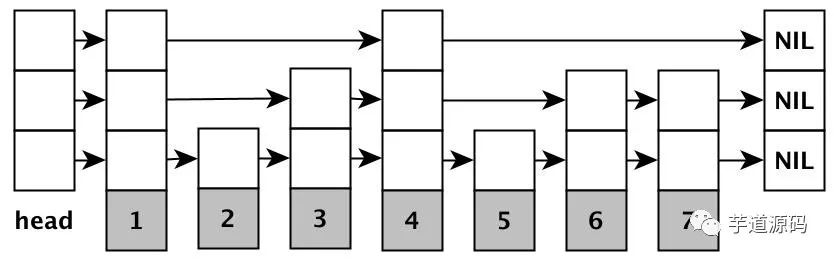 首先在每个geohash网格中的geohash值都是连续的,有固定范围。所以只要找出有序集合中,处在该范围的位置对象即可。以下是有序集合的跳表数据结构: