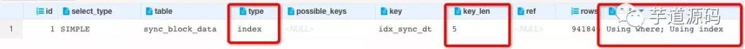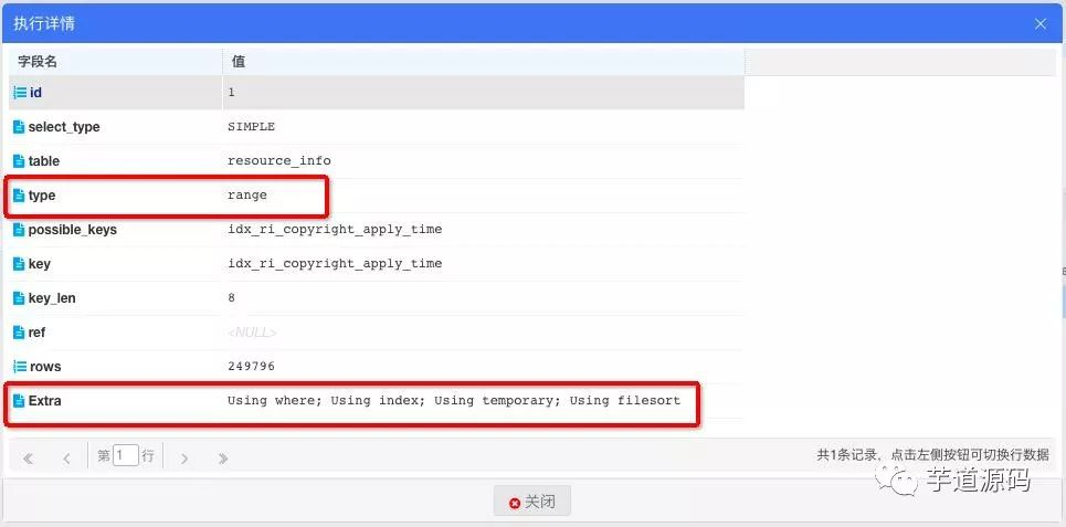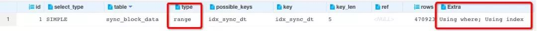 执行计划中慢查询和快查询唯一的区别就是type不一样:慢查询中type为index,快查询中type为range。