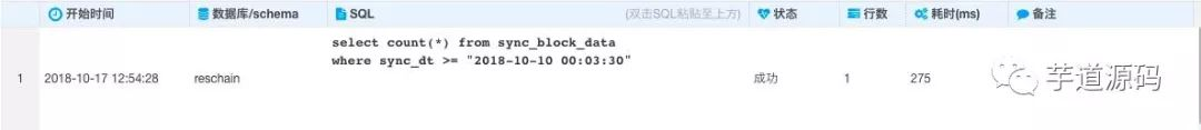 sync_dt的类型为datetime类型。换另外一种sql写法,直接通过比较日期而不是通过时间戳进行比较。将sql中的时间戳转化为日期,分别为2018-10-10 00:03:30和2018-10-17 00:03:30 执行sql: