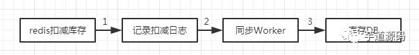 上图中,直接在Redis中扣减库存,记录日志后通过Worker同步到数据库,在设计同步Worker时需要考虑并发处理和重复处理的问题。
